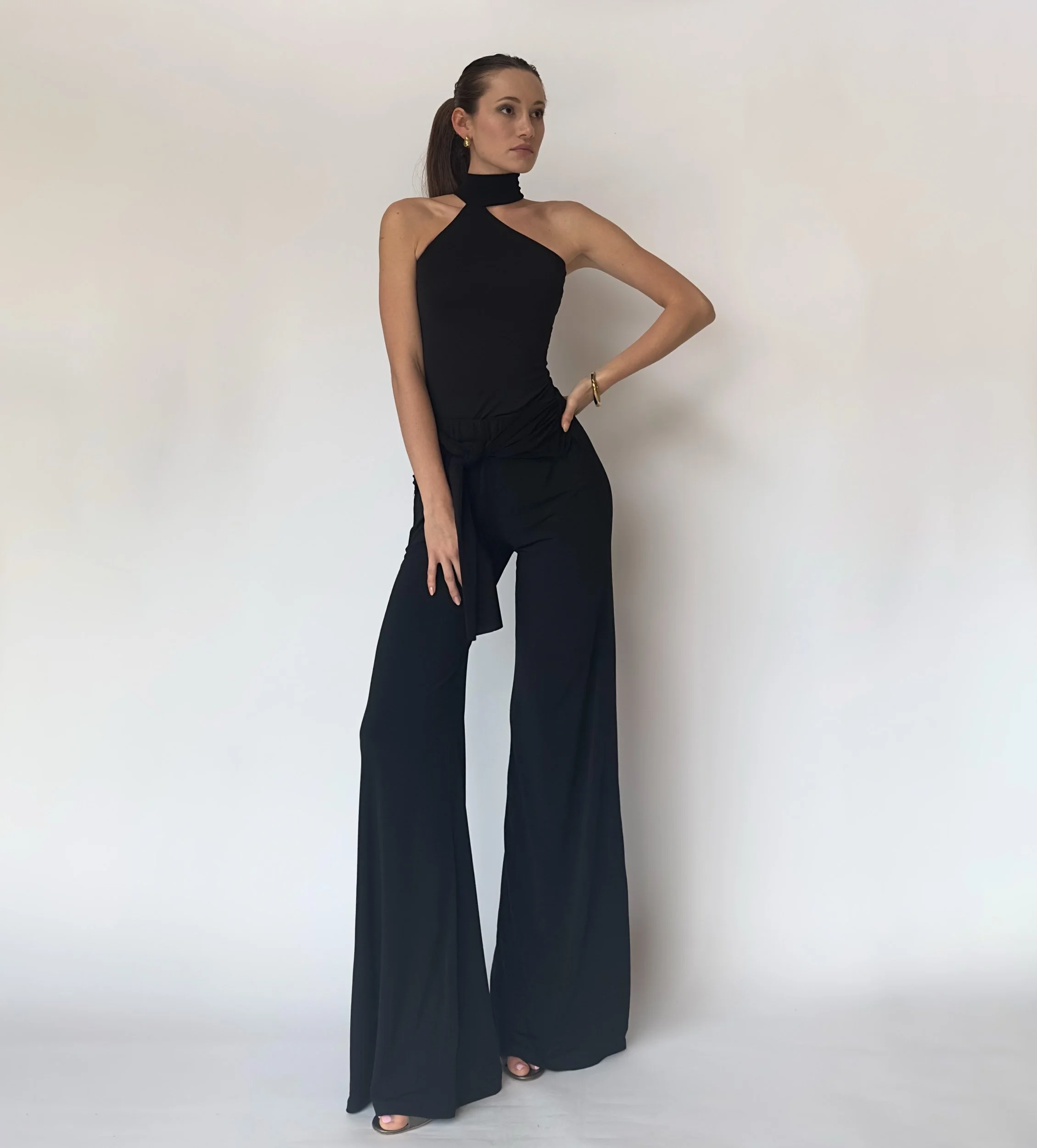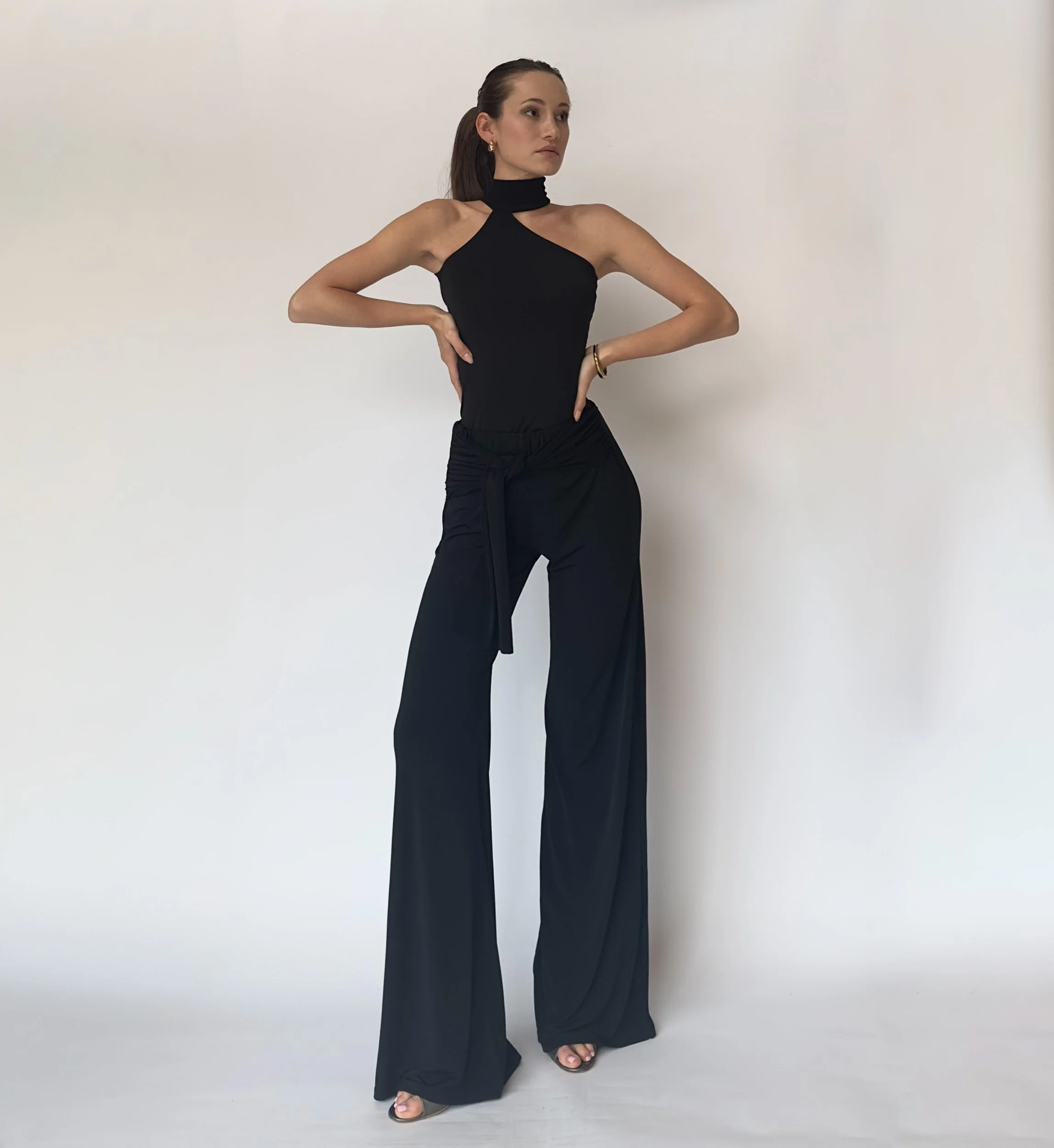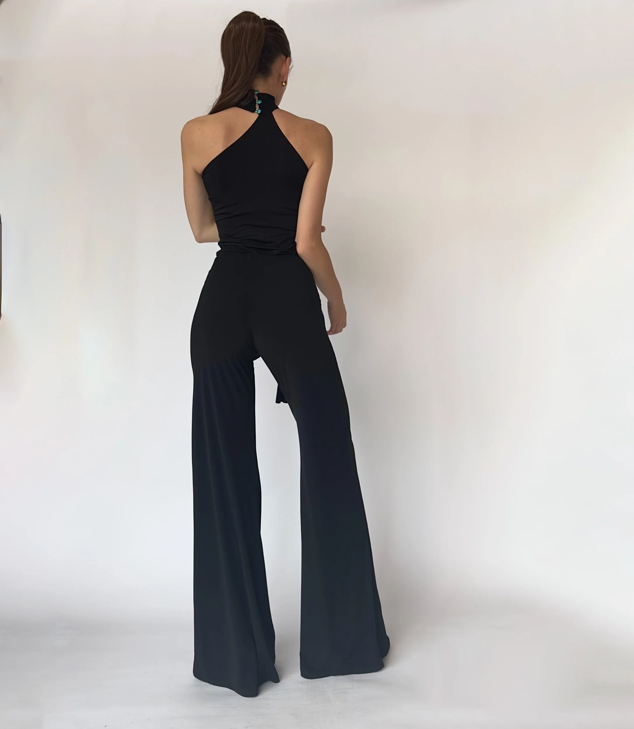 Bombon Spain, made in Spain. Black Neck top with aqua buttons. Stretch fabric.