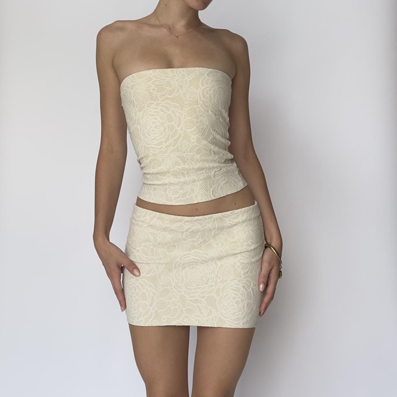 Mini skirt and tube top feature elastic!