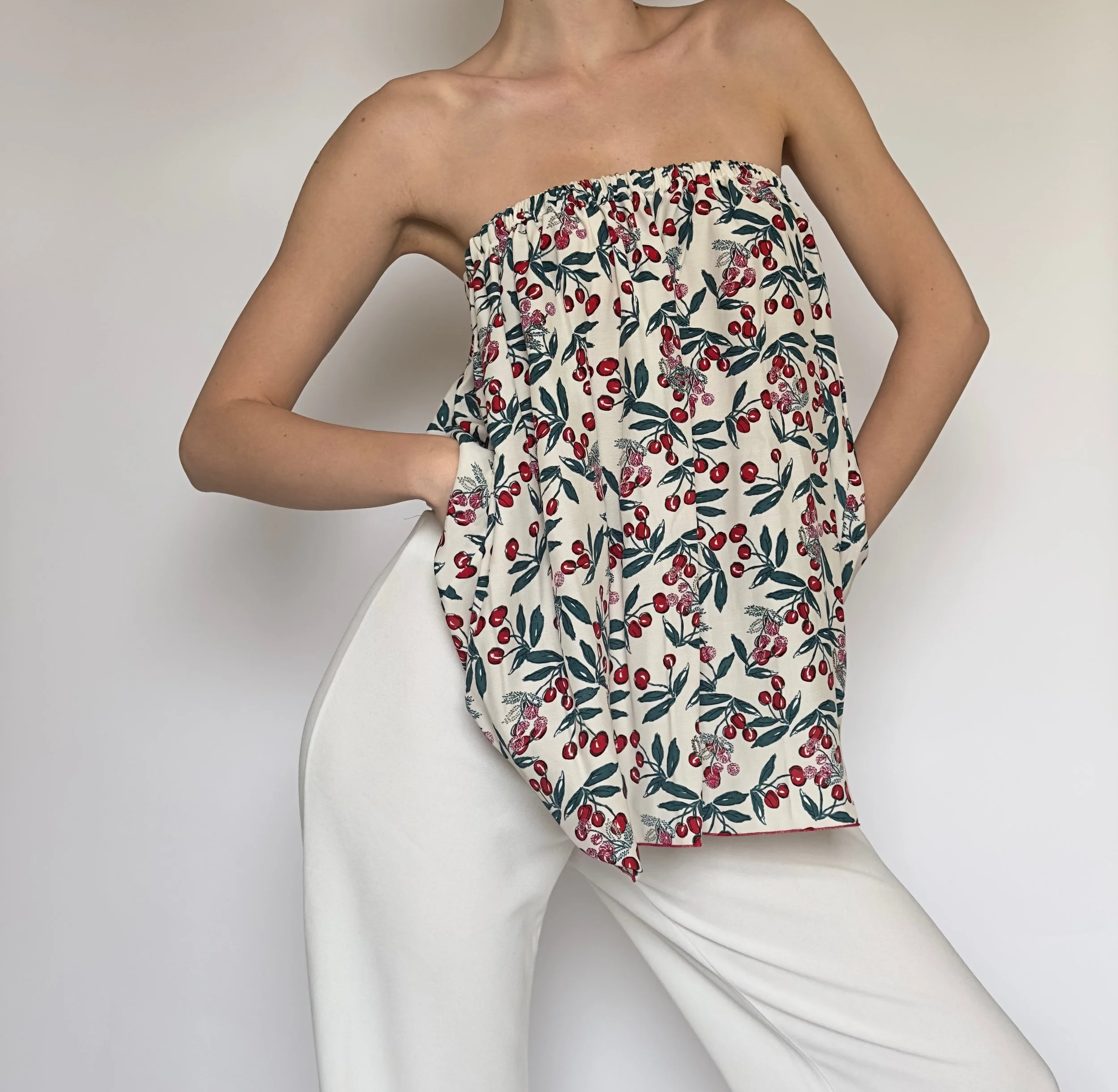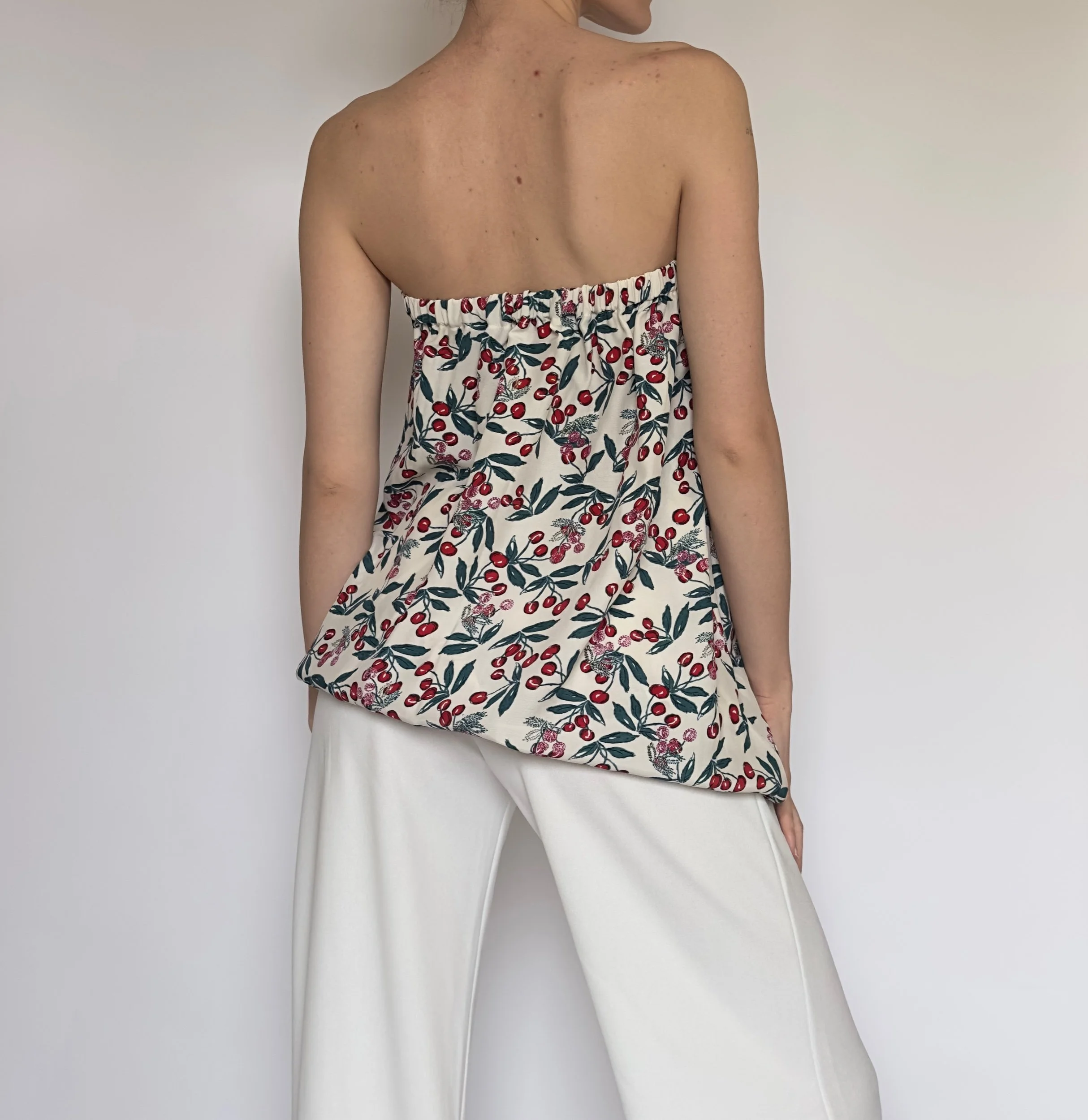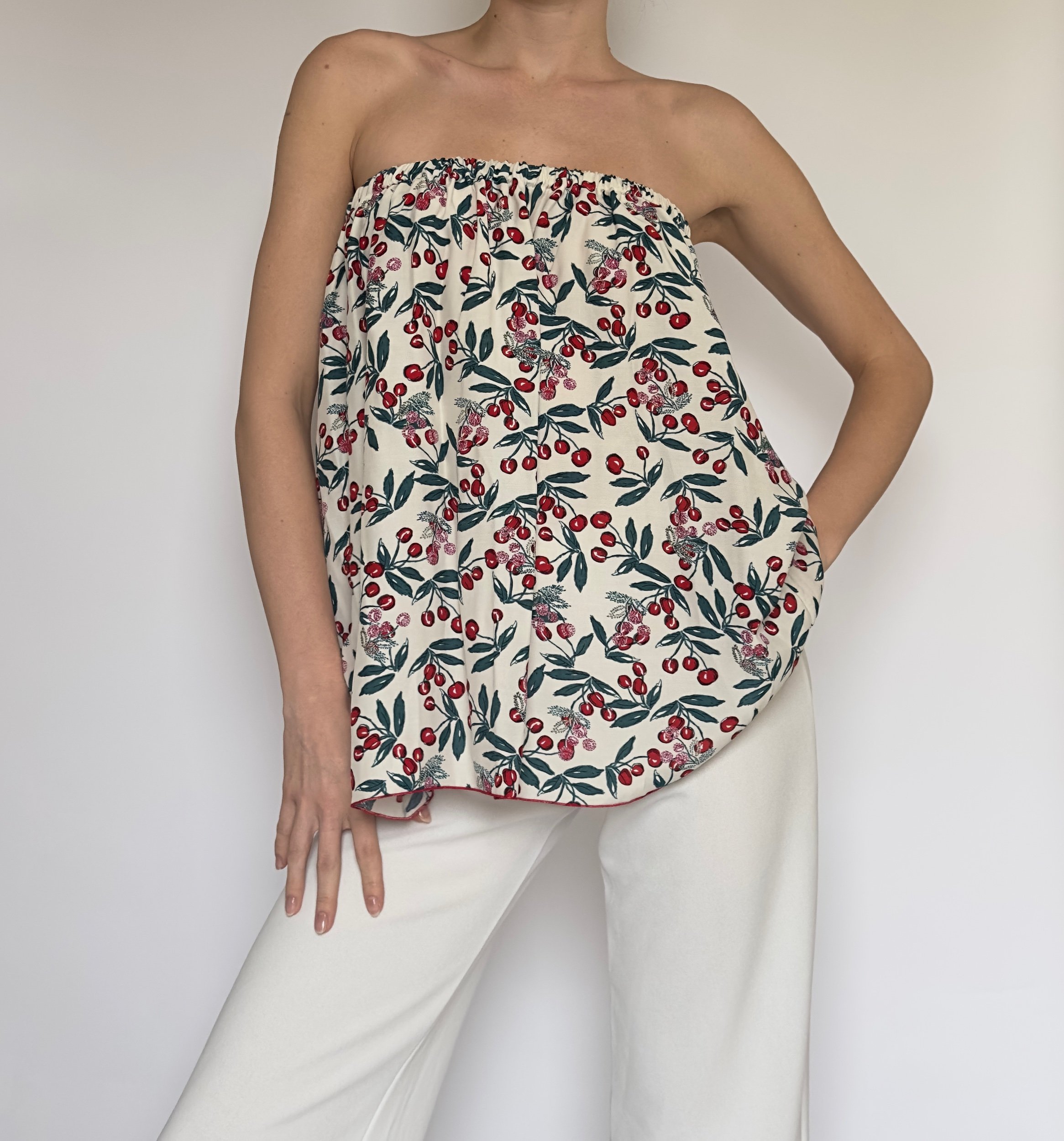 Add a playful touch to your wardrobe with this cherry print strapless tube top, designed for easy, breezy style. Made from 100% cotton, it offers a lightweight, breathable feel that’s perfect for warm days and effortless layering.