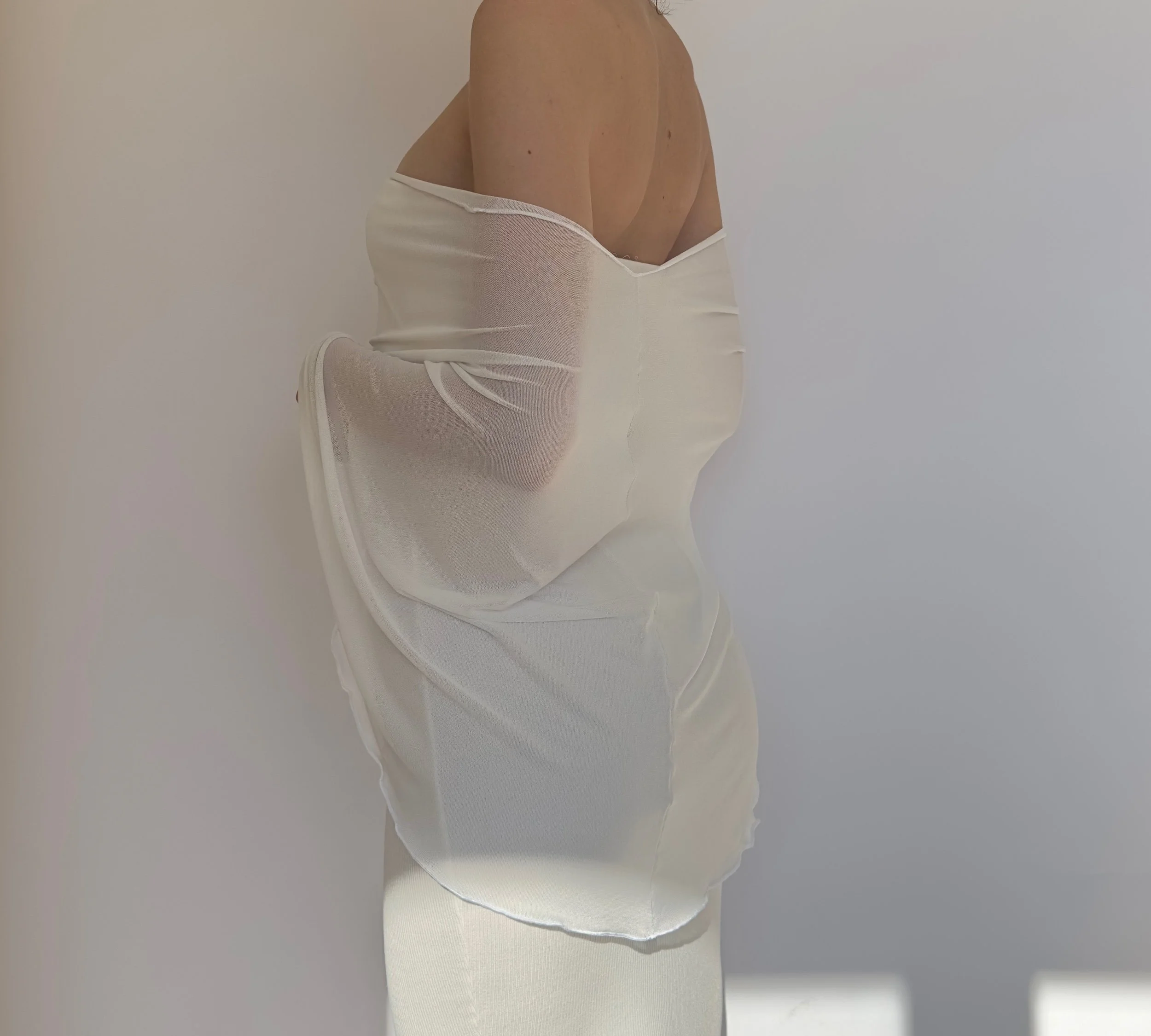 - One size only, features one side seam in the back and a lettuce rolled hem