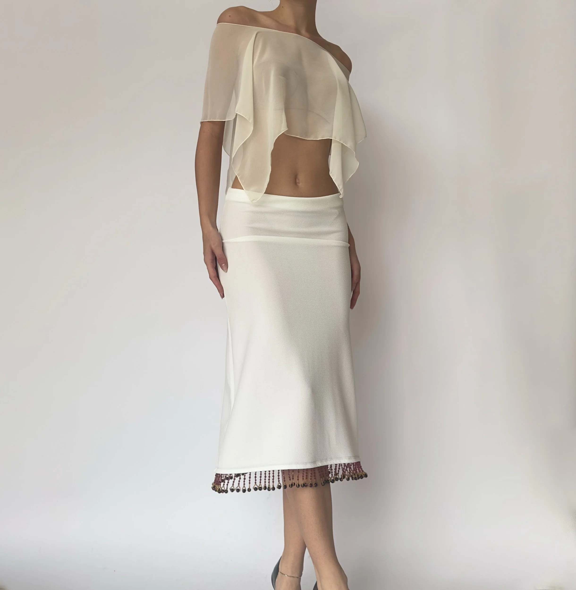 Line By Szubert › Midi Skirt | Two in One white Image 1 of 2 Image 2 of 2 Midi Skirt | Two in One white $60.00 Our two in one midi skirt and mini dress! Stretch Liverpool crepe fabric with a beaded tassel trim hem! size S, model is 5’6 Add To Cart Added! Our two in one midi skirt and mini dress! Stretch Liverpool crepe fabric with a beaded tassel trim hem! size S, model is 5’6